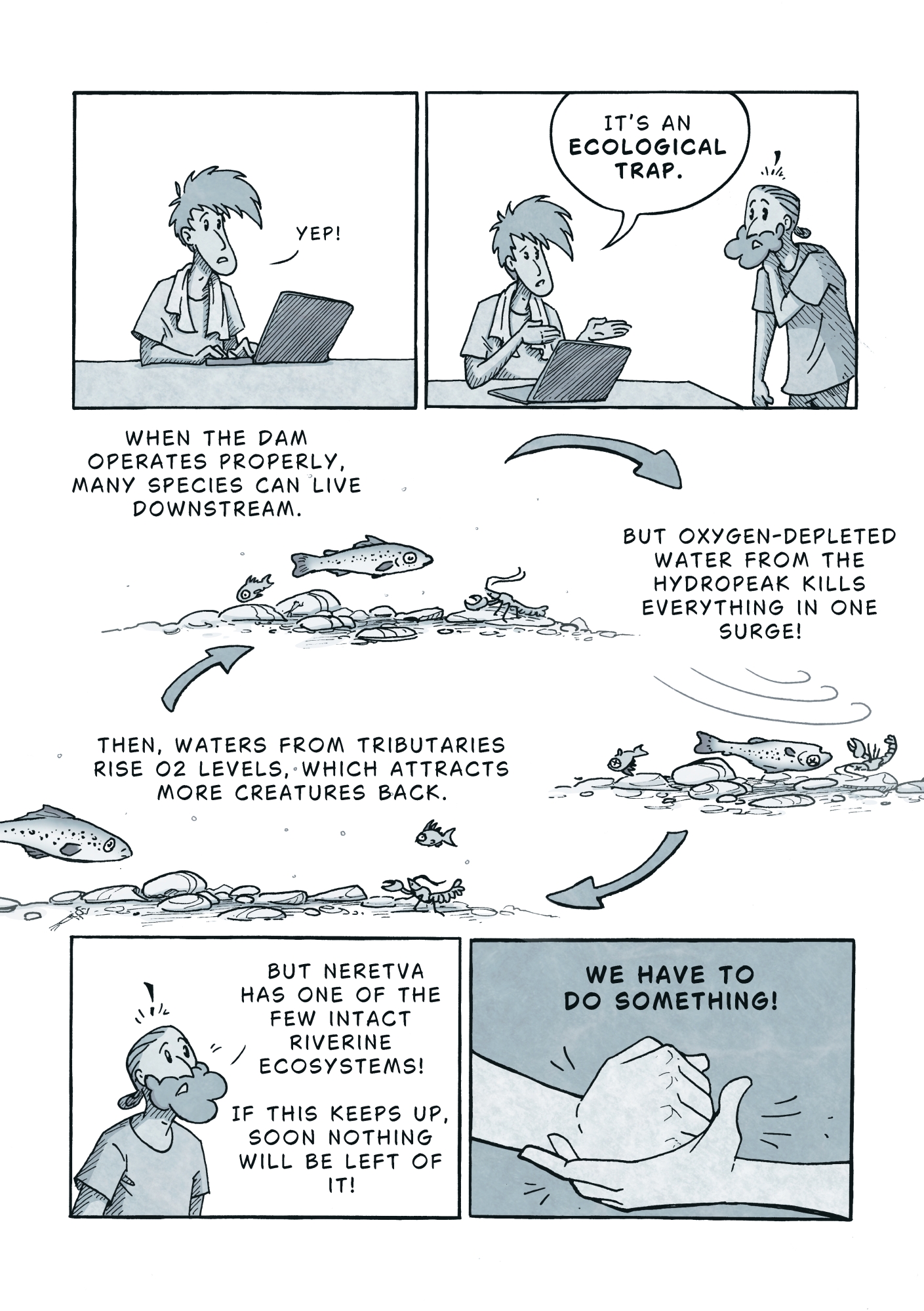 The story of this comic is partially inspired by and partially retells events that transpired in connection to a massive fish kill-off on the Neretva River in Bosnia and Herzegovina on 12th September 2025.